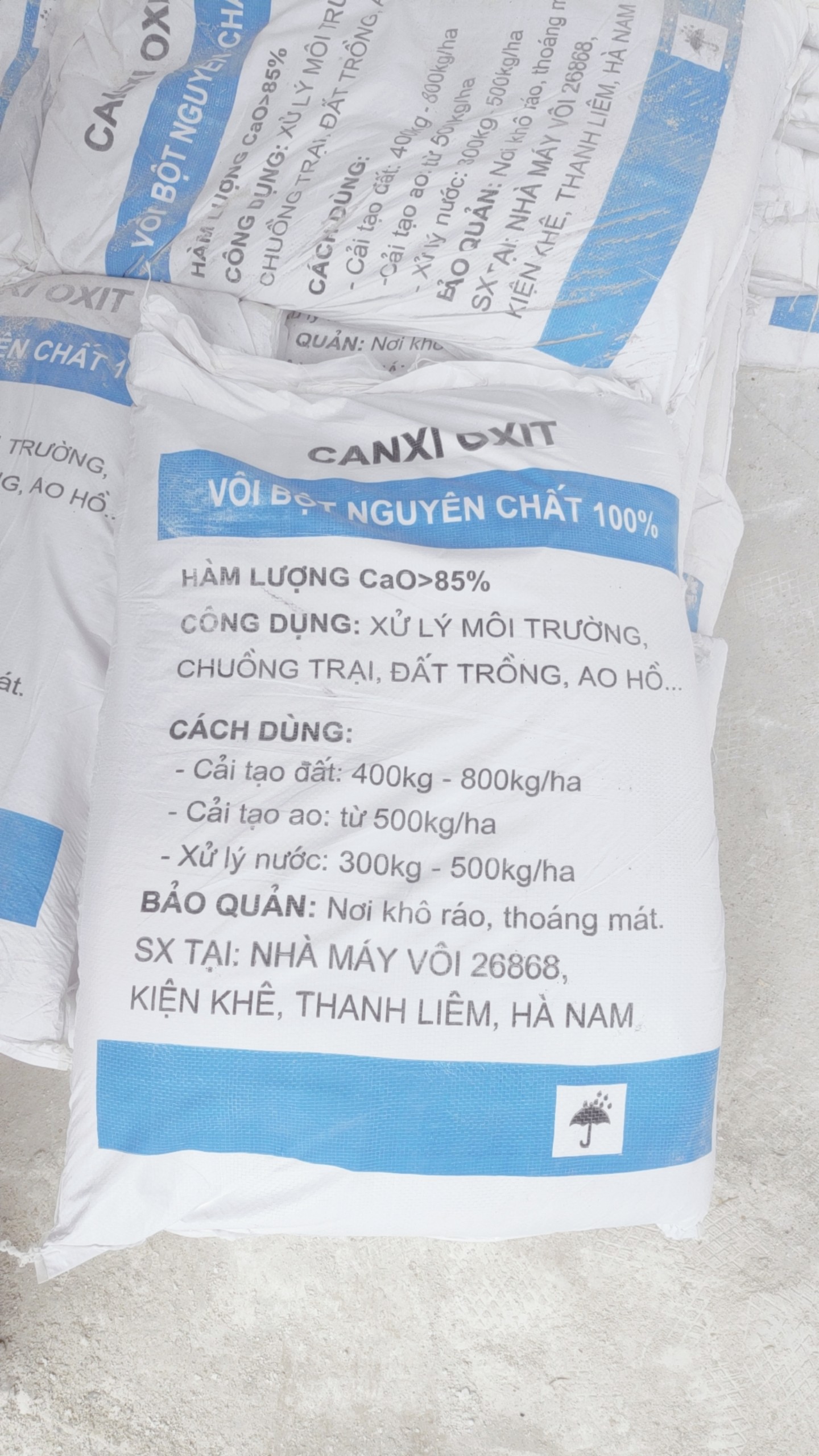 - Công dụng: Xử lý nước thải, rác sinh hoạt, sát trùng , khử khuẩn chuồng trại, ao hồ. Ngoài ra, vôi xay nóng còn được sử dụng phổ biến trong ngành chế tạo mủ cao su, làm nấm.